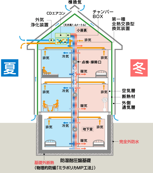 暖かい地下室 湿気や結露、カビの無い快適な地下室を外断熱でつくる エアコン1台で全館空調
