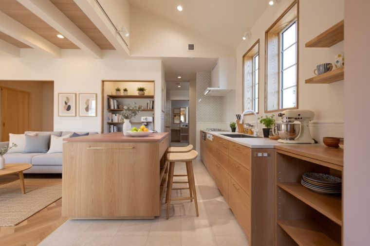 プラン作りはとても長い時間をかけて検討しましたが、そのおかげで納得のいく家が完成しました。回遊できる間取りは、子どもが家の中を行ったり来たりしながら遊べて、とても気に入っています。家族それぞれにお気に入りの場所があり、私はキッチンや和室、天井の色合いなど、細かな部分まで満足しています。家にいる時間が増えて、心地よさを実感しています。