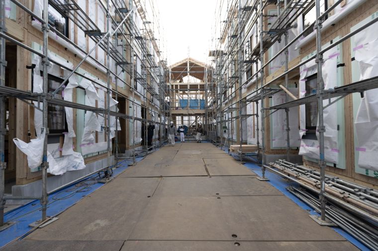 さらに、上棟では大型パネル構法を採用した。