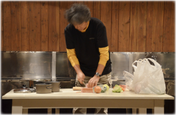 2階は広々とした作業スペースがあります。業務用ミシンが3台置いてあり、洋服やアウトドア用品を自分で直したり、また、使いやすいように改造したりします。この家の周辺の山々の中を自転車で走ったり、オートバイで散策したりするのが趣味ですが、傷んでしまったウェア類をこのミシンで直したりもします。
